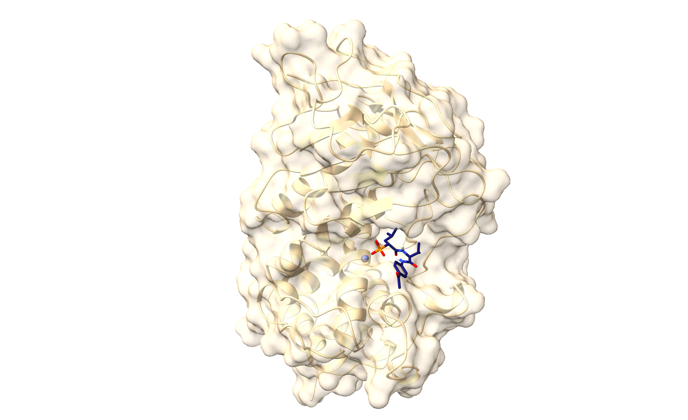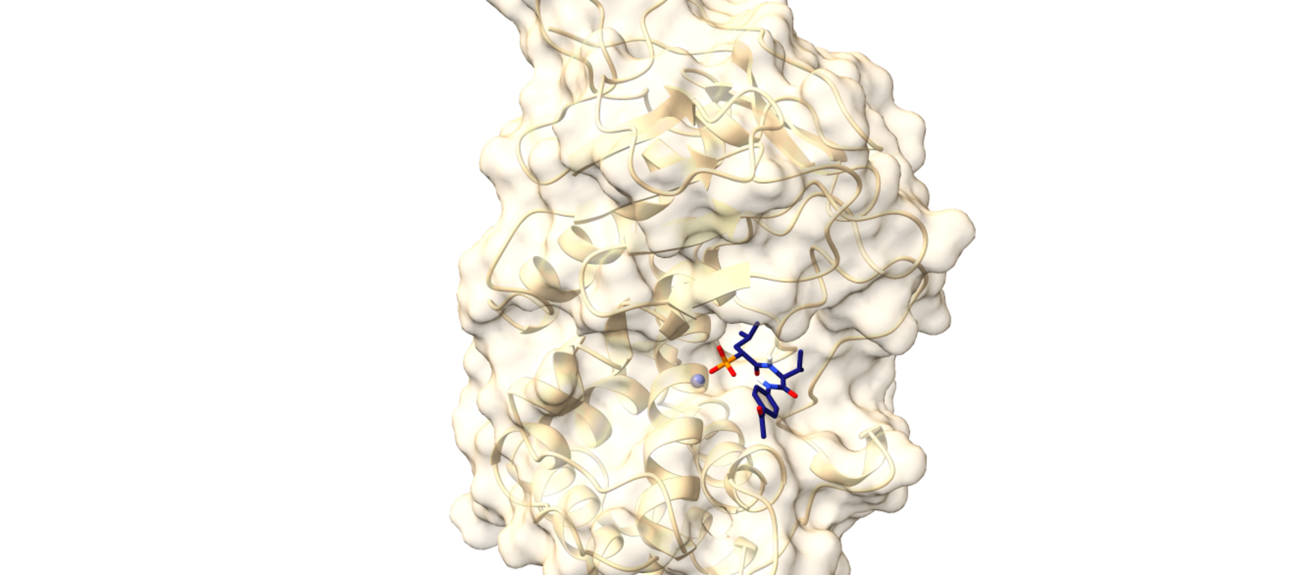 Was die Forscher genau gemacht haben, erläutert der Chemiker Dr. Alexander Kiefer, der gemeinsam mit Dr. Christian Schütz aus der Abteilung von Anna Hirsch Erstautor der Studie ist, die nun im renommierten Fachmagazin Advanced Science erschienen ist. Darin beschreiben die Autor:innen, wie sie LasB in die Zange genommen haben – und das wortwörtlich. „LasB enthählt einen Zink-Komplex. Diesen haben wir chelatisiert“, sagt Kiefer, der seine Nachwuchsgruppe „Antimikrobielle Wirkstoffe durch chemoenzymatische Synthese“ im April am HIPS startet. Das bedeutet, dass sie den Zink-Komplex des Enzyms LasB an zwei Stellen mit einem speziell dafür entwickelten peptidischen Hemmstoff „gepackt“ haben. Durch diese Bindung an den Zink-Komplex wurde LasB insgesamt unschädlich gemacht, so dass einerseits die großen Proteine wie Kollagen nun nicht mehr angegriffen werden und andererseits auch die Bestandteile des Immunsystems wie zum Beispiel Antikörper von LasB nichts mehr zu befürchten haben. Von großer Bedeutung ist dabei die Tatsache, dass der Hemmstoff umliegende Metallkomplexe humaner Enzyme, die in gesundem Gewebe enthalten sind, nicht angreift, sondern ausschließlich an LasB seine gewünschte Wirkung entfaltet.
