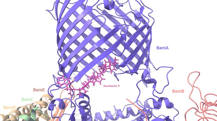 In Verbindung mit einer wachsenden menschlichen Bevölkerung und dem zunehmenden Problem der antimikrobiellen Resistenz (AMR) bei Bakterien, stehen Gesundheitssysteme vor einer globalen Antibiotikakrise. Um AMR effektiv bekämpfen zu können, werden neue Antibiotika mit neuen Wirkmechanismen dringender benötigt als je zuvor. Ein Team um Rolf Müller von der Abteilung Mikrobielle Naturstoffe hat nun die 2019 entdeckte Naturstoffklasse der Darobactine weiter optimiert und der entwickelte Frontrunner zeigt vielversprechende Eigenschaften gegen den Carbapenem-resistenten Krankenhauskeim Acinetobacter baumannii und weitere klinisch relevante Erreger.