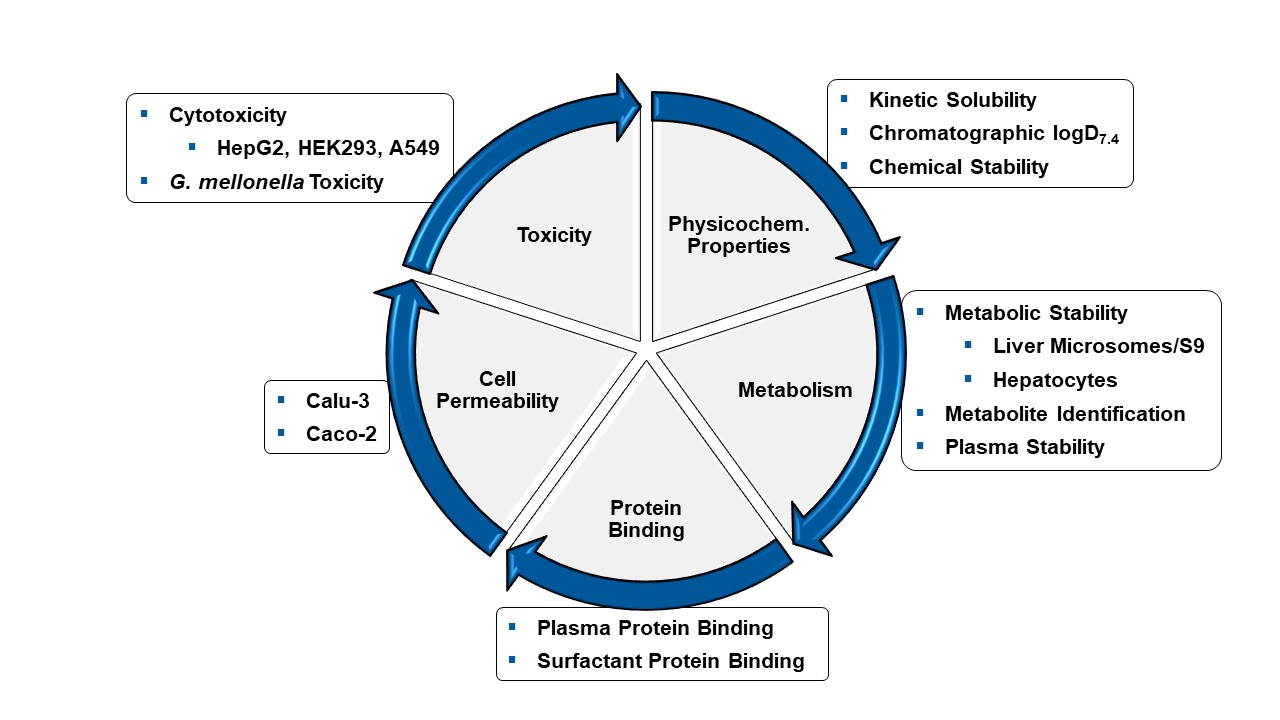 Continuous screening of ADMET properties is guiding optimisation of compounds in-house as well as in collaboration with external groups. The results generated herein serve as a basis for the selection of compounds for in vivo studies, such as in our in-house zebrafish facility.