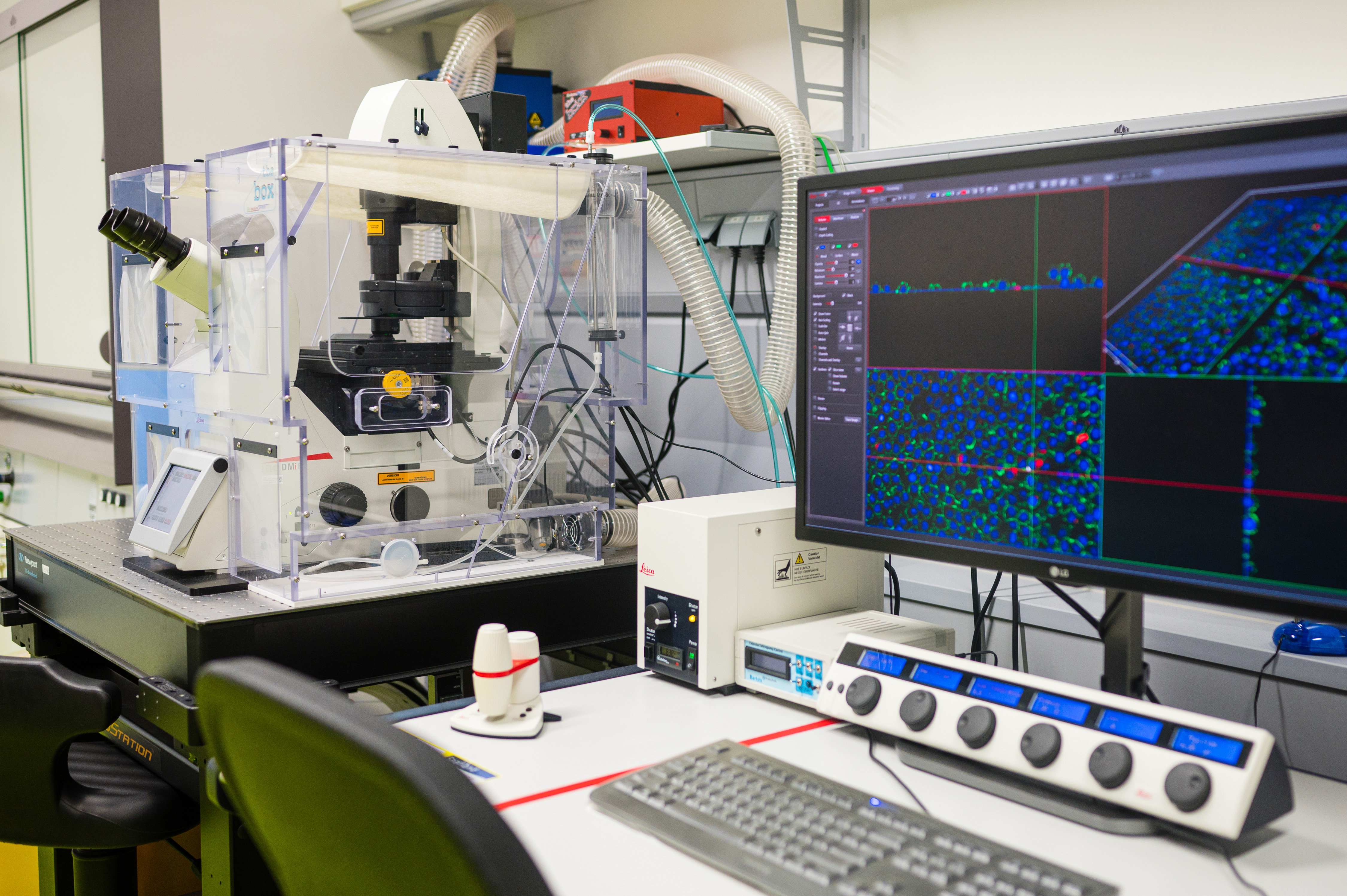 The Imaging platform available at HIPS offers cutting-edge technology for both functional and molecular imaging. Combining fluorescence (normal and confocal) and scanning electron microscopes, this platform allows visualising and characterising micro and nanoscale drug delivery systems, as wells as physiological, biochemical and infective phenomena in in vivo/in vitro systems (e.g. living or fixed cells, tissues, biofilms, etc.).
