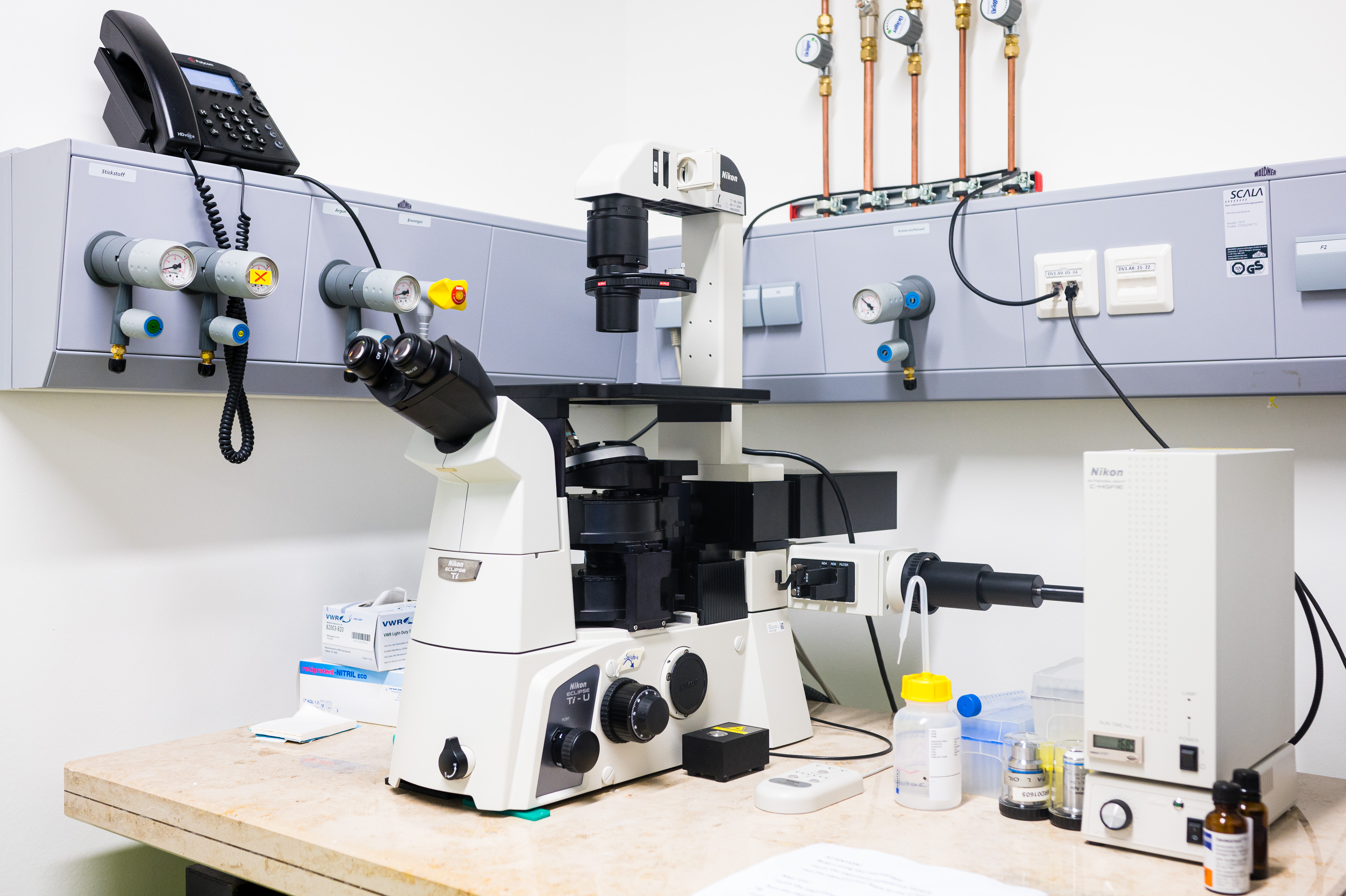 The fluorescence microscope (Nikon Eclipse Ti- S) is an optical microscope that uses fluorescence to observe both biological and inorganic samples. The confocal microscope (Leica DMi8 inverted microscope) also uses fluorescence optics to resolve detailed structures but in several optical planes, bringing the opportunity to obtain high-resolution 3D reconstructions of the samples. Labelling the samples with fluorescent dyes, the fluorescence microscopes allow us to visualise e.g. cellular compartments, cellular growth patterns, biofilm structures or the biodistribution, internalization and subcellular location of drugs and carriers inside the cells or within the tissue.
