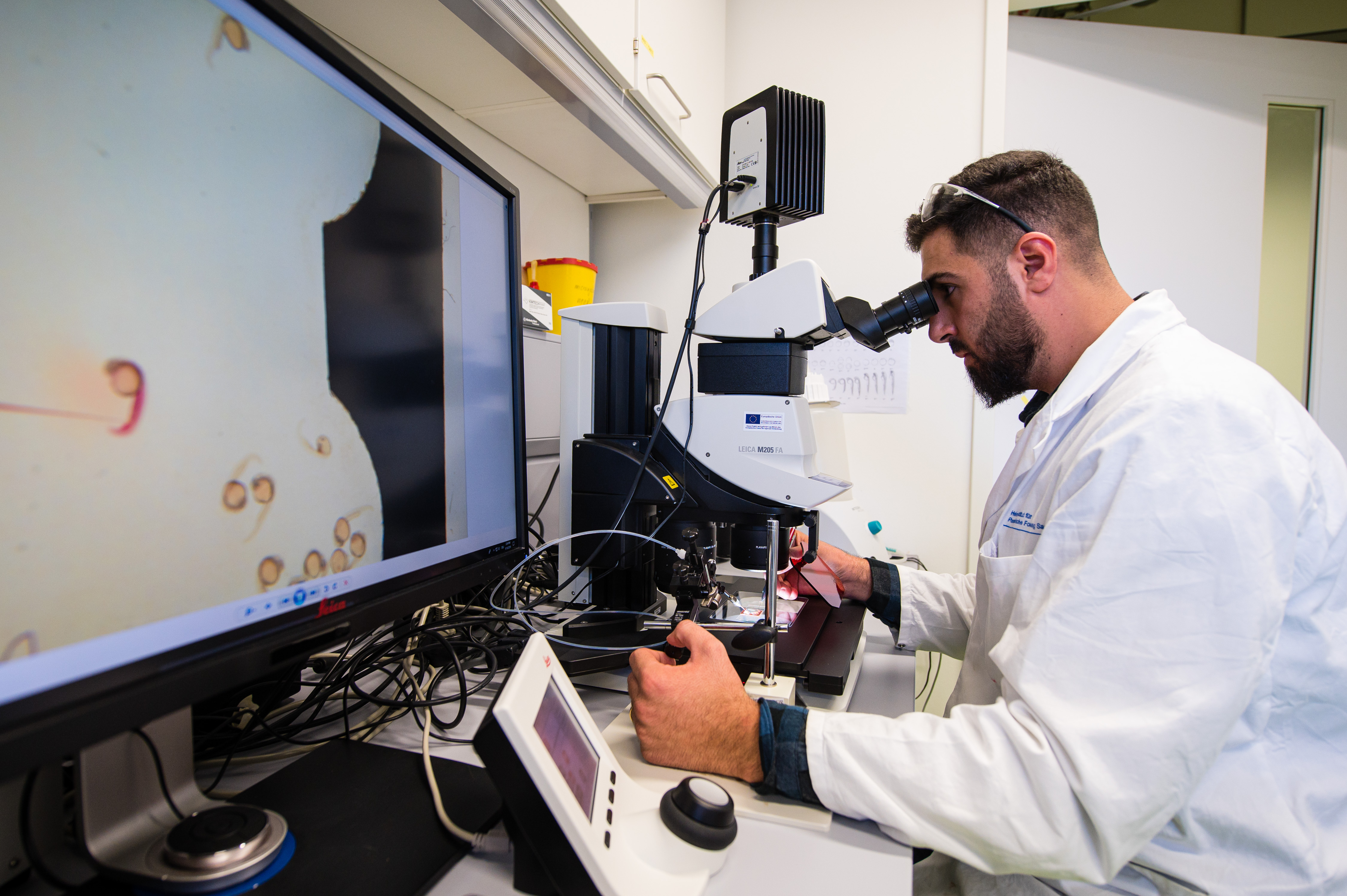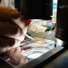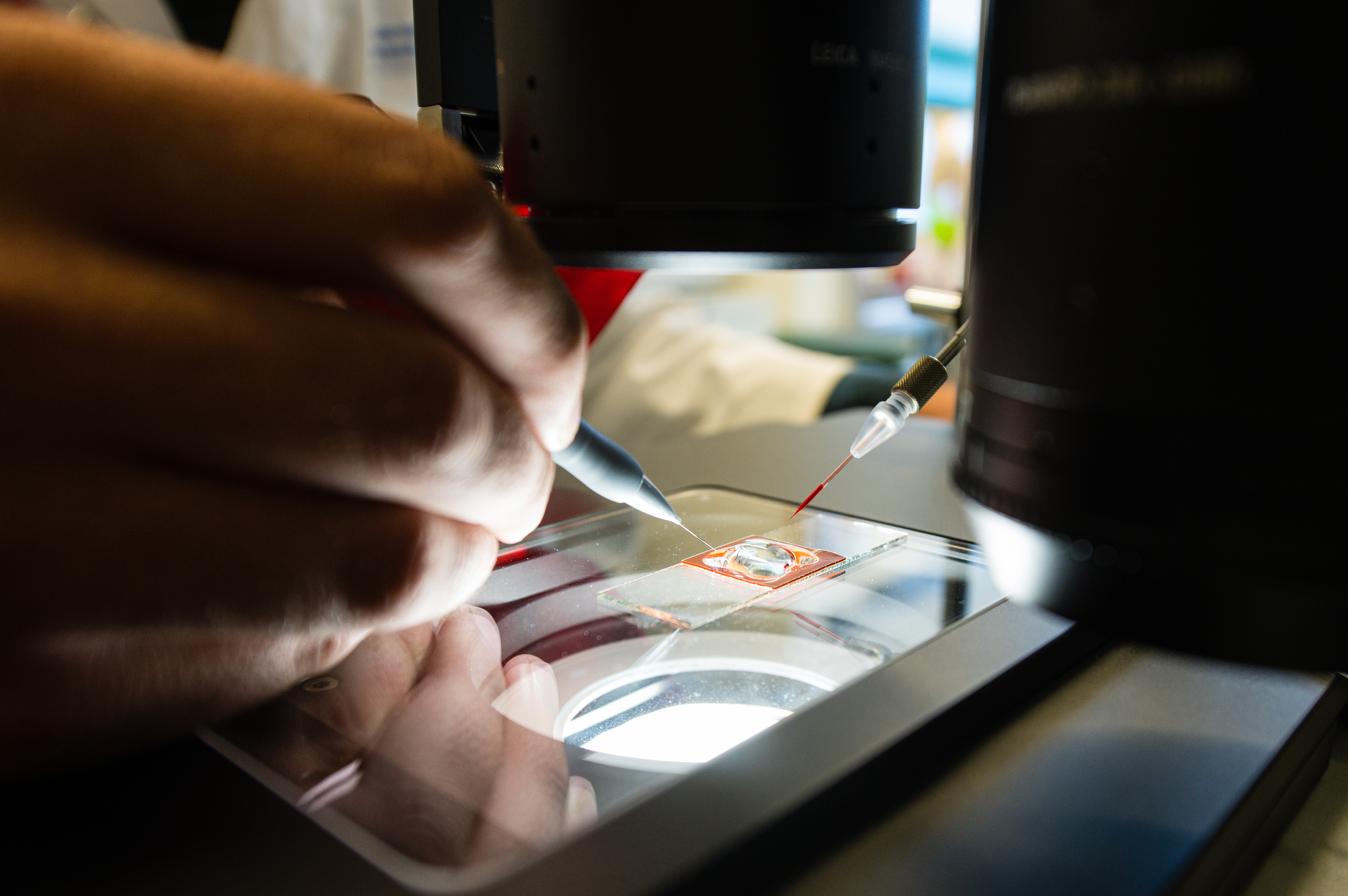 Since 2017, the Zebrafish Facility at HIPS is fully functional. It has a system volume of 3,500 liters and a total capacity of > 25,000 animals. Two wild type strains as well as several mutant or transgenic models are currently available. In our BSL2 laboratory, two microinjection stations comprising of fluorescent stereomicroscopes with pressure injectors and micromanipulators are available.