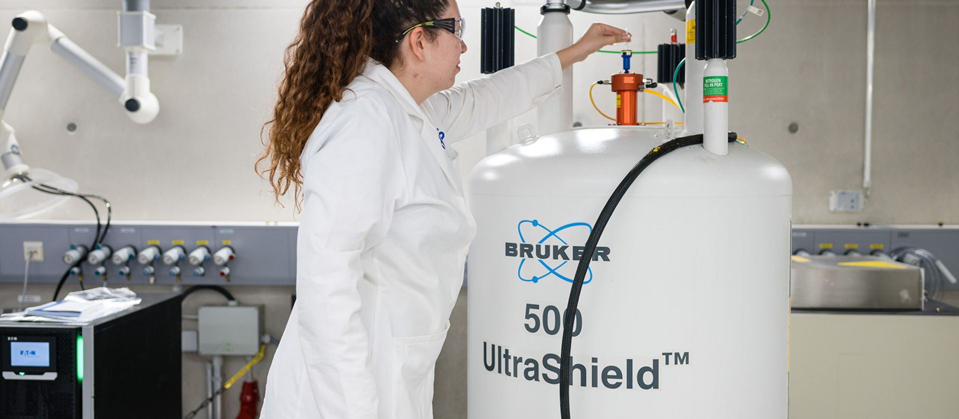 Avance Neo Spectrometer, UltraShield Plus 500 MHz, N2-cooled 5 mm Prodigy BBO-CryoProbe (‘observe’) with autosampler.