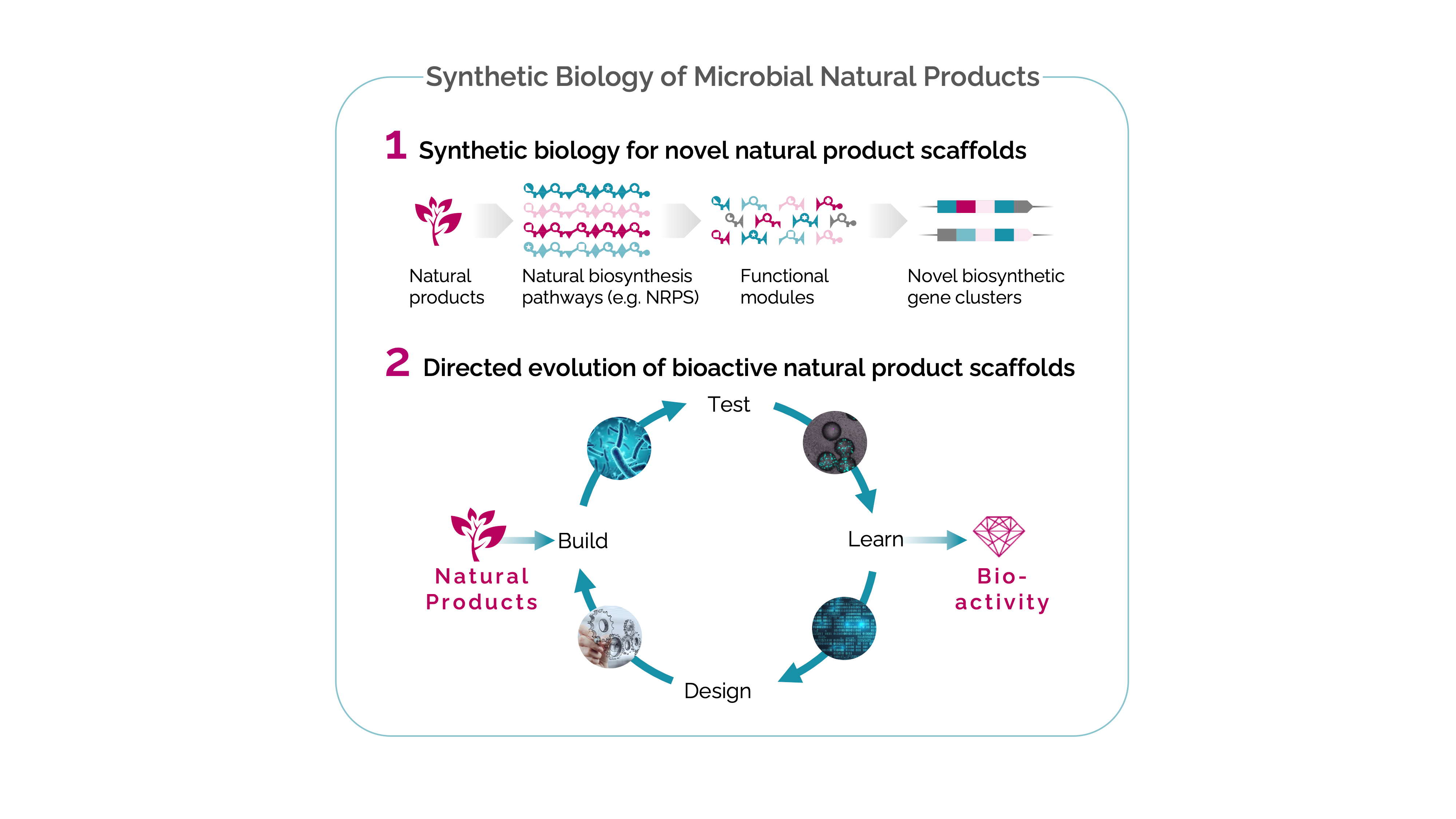 The advent of antimicrobial resistance is one of the fundamental unresolved challenges of our time. A repeatedly stressed source for discovering new antibiotics are natural products. Yet, many antimicrobial drug leads identified in the past were not developed for therapeutic use because of a lack of access to natural product scaffolds often exhibiting challenging chemical structures. To overcome both, the bottlenecks of traditional natural product research and the limitations of synthetic chemistry, the group applies a combination of computational data mining, synthetic biology, and bio-combinatorial high-throughput experimentation to optimise previously neglected but well-characterised molecular scaffolds that either are well advanced in preclinical development, but failed to be marketed due to poor pharmaceutical properties.